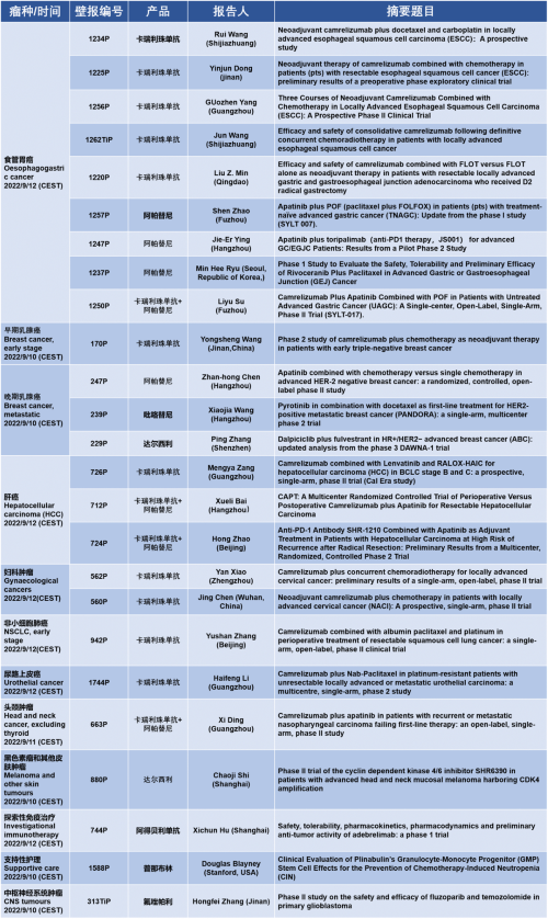 作为从事创新和高品质药物研发的国际化制药企业,尊龙凯时Ag医药的研究成果在2022 ESMO大会上还收获了25项壁报形式的报告。其中,食管胃癌领域共有9项研究入选,研究的方案主要是卡瑞利珠单抗或卡瑞利珠单抗联合阿帕替尼,通过与化疗或放化疗联用,新辅助治疗食管鳞癌或胃癌。2022年9月12日(CEST),让我们齐聚ESMO大会,共同领略食管胃癌研究领域的学术盛宴。此外,尊龙凯时Ag医药达尔西利、吡咯替尼、阿得贝利单抗等创新药还有4项乳腺癌研究、3项肝癌研究及其他领域的9项研究都将会以壁报展出,让我们共同期待!